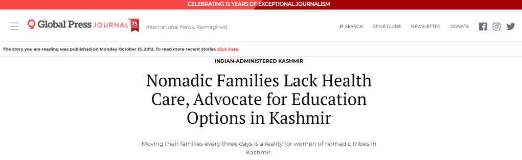 Traveling in remote areas in the upper hills of Kashmir, the nomadic women and girls do not have access to, or much knowledge of, educational or health facilities. They also lack other basic amenities such as clean drinking water and electricity.