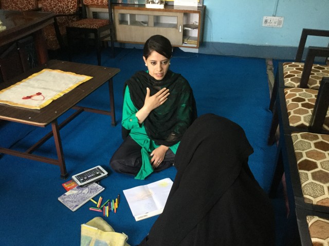 Besides working as a counselor at a local private school, Mir also gives free sessions to women and youth from all over Kashmir, both individually – as in Shiekh’s case – and in groups, through her NGO Paigaam. Those she works with include at-risk youth; high school and college students who were injured by pellet shots last year during protests; and “half-widows.”